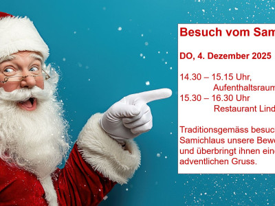 Traditionsgemäss besucht der Samichlaus unsere Bewohnerinnen und Bewohner und überbringt ihnen einen adventlichen Gruss.