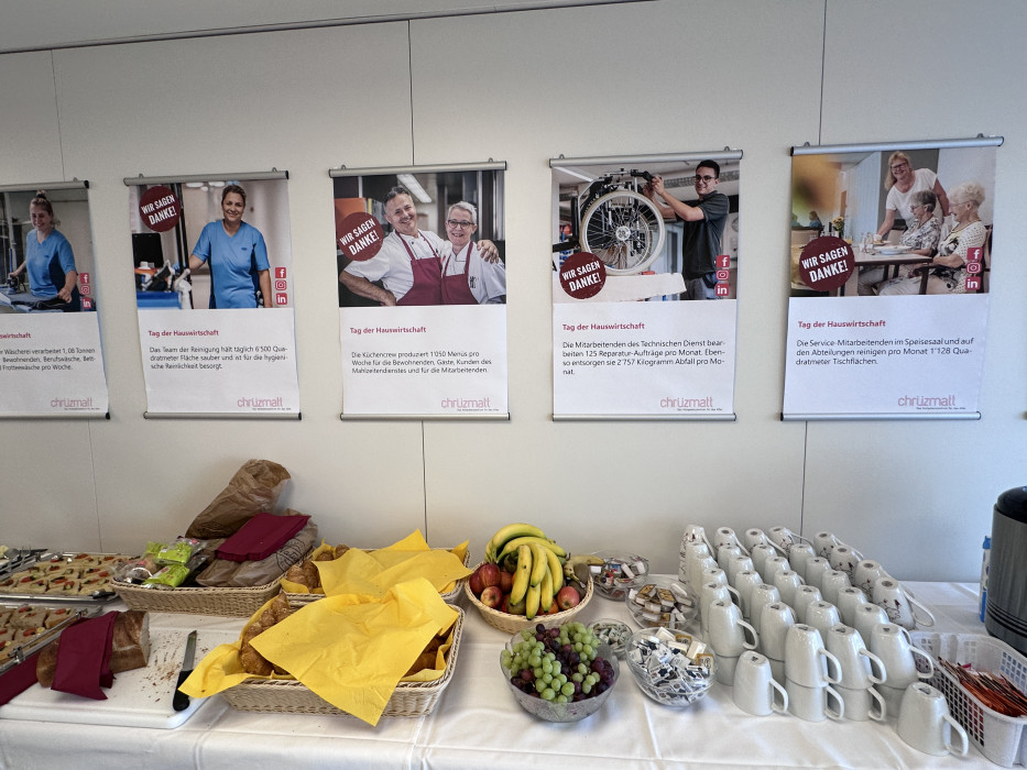 Als Zeichen der Anerkennung lädt die Geschäftsleitung alle Mitarbeitenden zu einem gesunden, nachhaltigen „Zmorgenbrunch“ am MO, 23. März ein. Jede*r darf sich über eine 30-minütige Pause freuen, um gemeinsam zu geniessen und zu feiern. Zusätzlich erhalten alle Mitarbeitenden der Hotellerie und Hauswirtschaft ein kleines, gesundes Präsent – als Dankeschön für ihren wertvollen Einsatz.