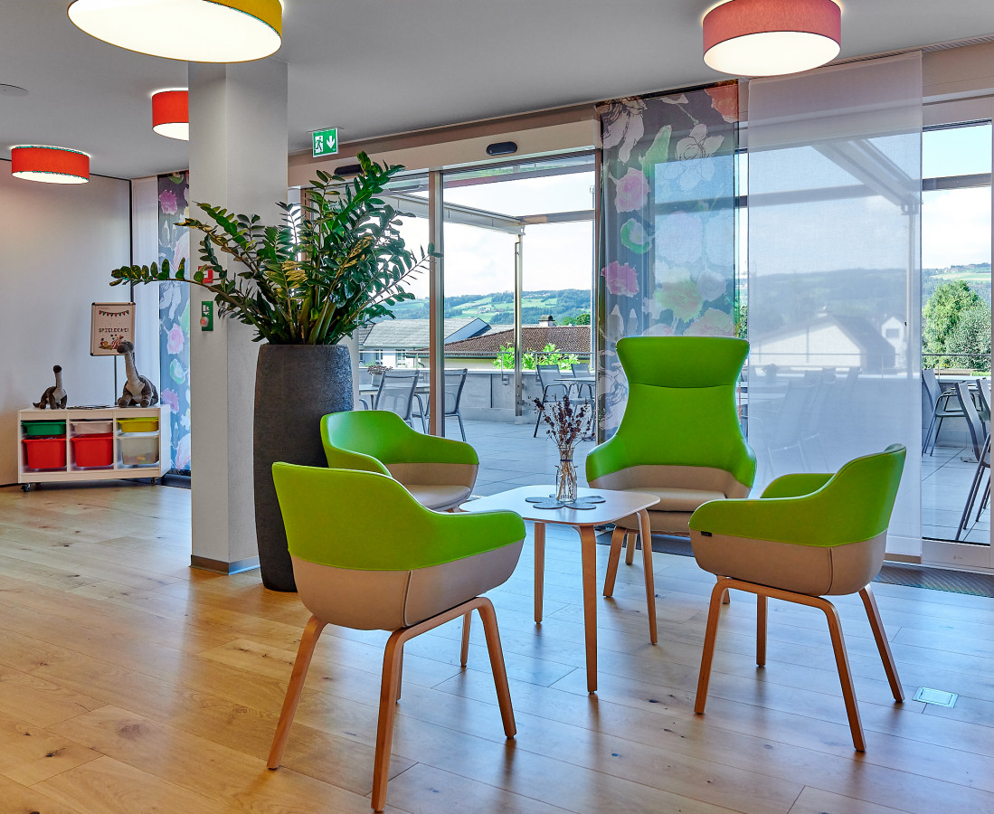 Die medizinische Betreuung erfolgt in der Regel durch den persönlichen Hausarzt. Die «Chrüzmatt» bietet Pflege und Betreuung rund um die Uhr – 365 Tage im Jahr. Auch eine professionelle Kurzzeitpflege (Ferien- und Tages- / Nachtaufenthalte) ist jederzeit möglich. Das Kompetenzzentrum für das Alter versteht sich als offene Institution und Treffpunkt für Jung und Alt. Besucherinnen und Besucher sind herzlich willkommen. Als Treffpunkt stehen nebst dem idyllischen Hiltiplatz in der warmen Jahreszeit ganzjährig auch die beiden Cafeterien «Lindenberg» und «Erlosen» zur Verfügung.